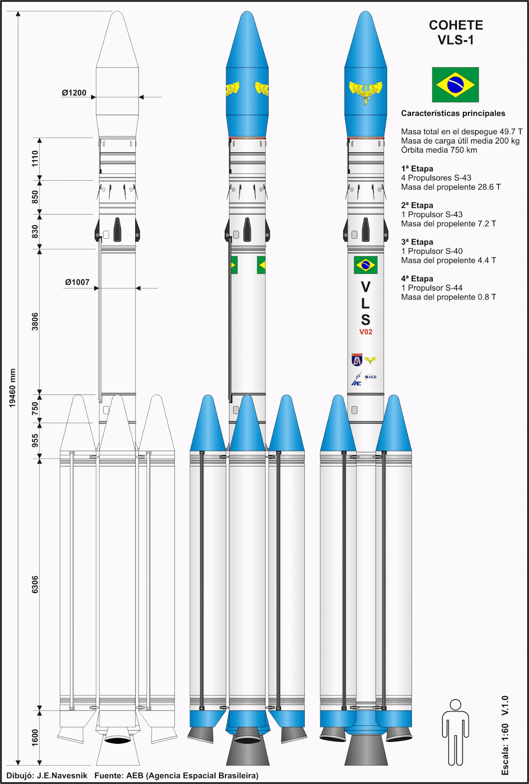 - Os quatro motores do primeiro estágio têm cerca de nove metros de altura. No total, o VLS tem 19,4 m.